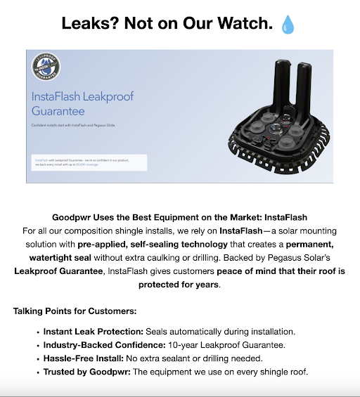 Advantages SERVICES OFFERED Full Service Engineering, Procurement and Installation Affiliate Programs for Installers and Sales Teams Lifetime Warranties available Standard 25 year warranty on panels, inverters and workmanship Only Tier One products are used on our installations STANDARD OFFERINGS Enphase Inverters Tier One Solar Panels Pegasus SkipRail (32% fewer roof penetrations) FINANCE PARTNERS PRODUCT PARTNERS